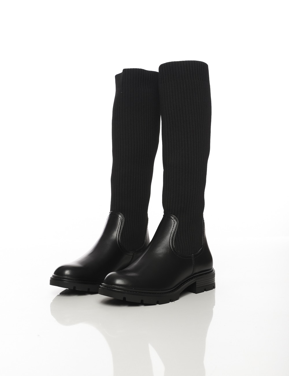 Bottes noires tendance avec tige en maille côtelée extensible, confortables et faciles à porter au quotidien.