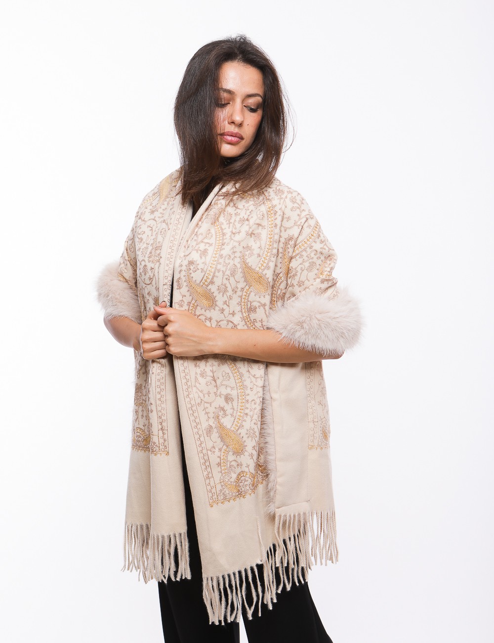 Cette cape est l'accessoire parfait pour affronter les journées froides avec style. Sa coupe ample et sa matière douce et chaude vous garantissent un confort optimal. La fourrure synthétique sur le col et les manches ajoute une touche de luxe et de sophistication.